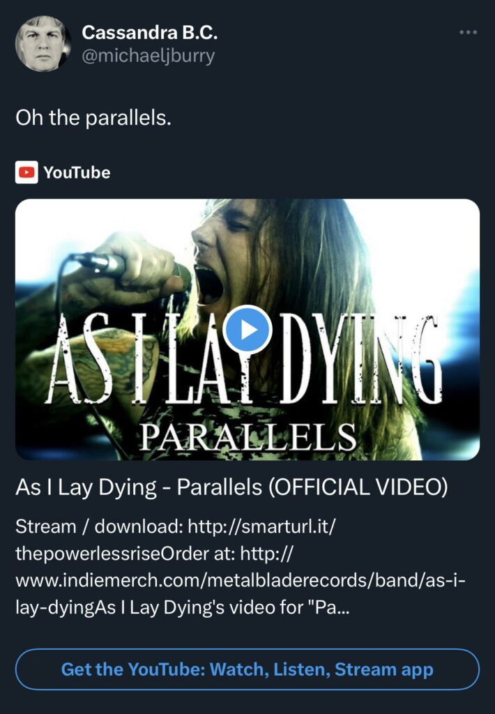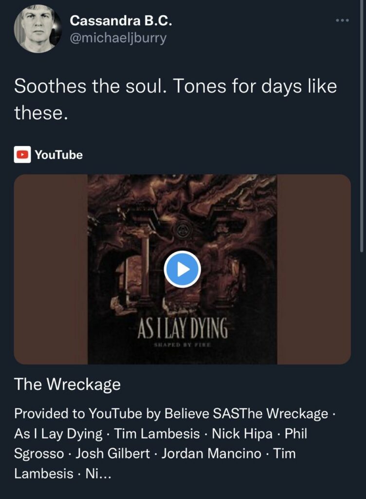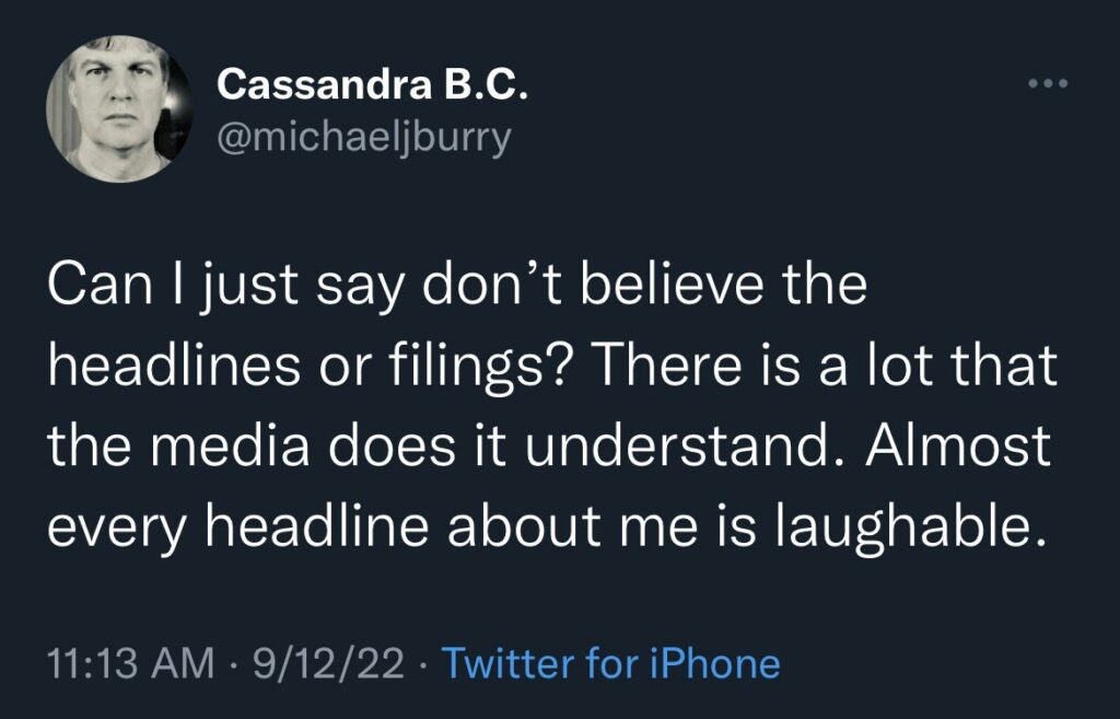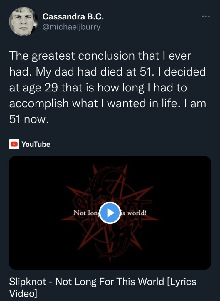 Michael Burry’s official X (formerly Twiiter) is https://twitter.com/michaeljburry/